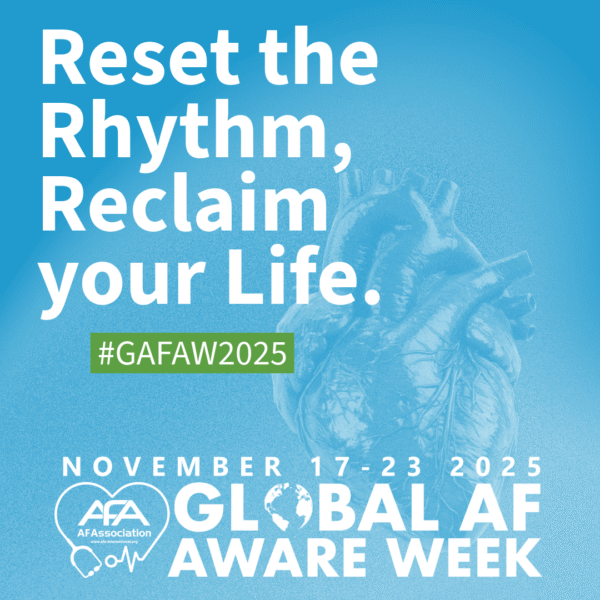 This Global AF Aware Week (GAFAW), we are encouraging everyone to Reset the Rhythm- by learning more about atrial fibrillation (AF/AFib), checking their pulse, and taking steps to live well with this arrhythmia.