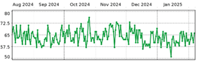 Sudden change in impedance mid-Dec; the 28-day average LVSI before this change is about 110Ω