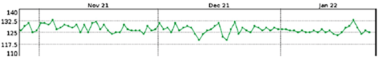 - If there is no sudden change in impedance, visually estimate the most recent 28-day average LVSI.
